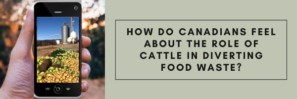 It is common practice in the beef industry to upcycle food loss and waste into high quality feed for cattle. This includes crops damaged by weather or pests (which was demonstrated through drought, smoke, and grasshoppers in 2021) all the way to non-retail quality food items from grocery stores and the by-products of brewing. Not only is this demonstrating the circular economy present in agriculture, but it also represents huge amounts of products being diverted from the landfill. From the Hall and White study in 2017, it was determined that cattle utilize 43 billion kgs of food waste per year in the US. The Public and Stakeholder Engagement (PSE) team set out to determine how Canadians felt about the role of cattle in diverting food waste.