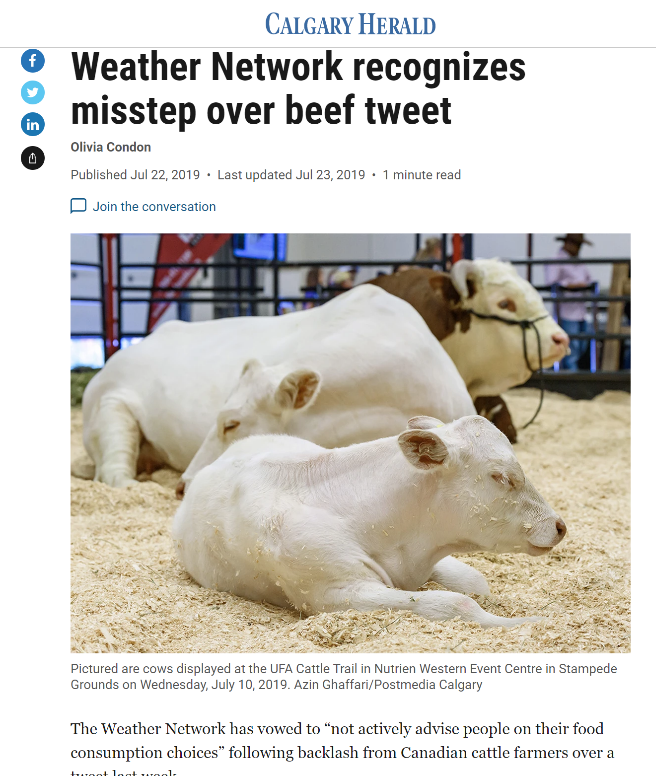 Some of the major issues that have been managed since 2019 include the EAT Lancet report (promoting a Planetary Health Diet consisting of little red meat), the Canada Food Guide, the Weather Network reducing meat consumption video and the proposed saturated fat labels for ground beef. In each instance, the PSE team was able to pivot the issue into highlighting the societal benefits of beef cattle and the 2030 Beef Industry goals. This includes an editorial written by the PSE team, and authored by Anne Wasko, about how reducing meat consumption could increase Canada’s overall emissions through grassland conversion that was seen by over 6 million Canadians in 2021.